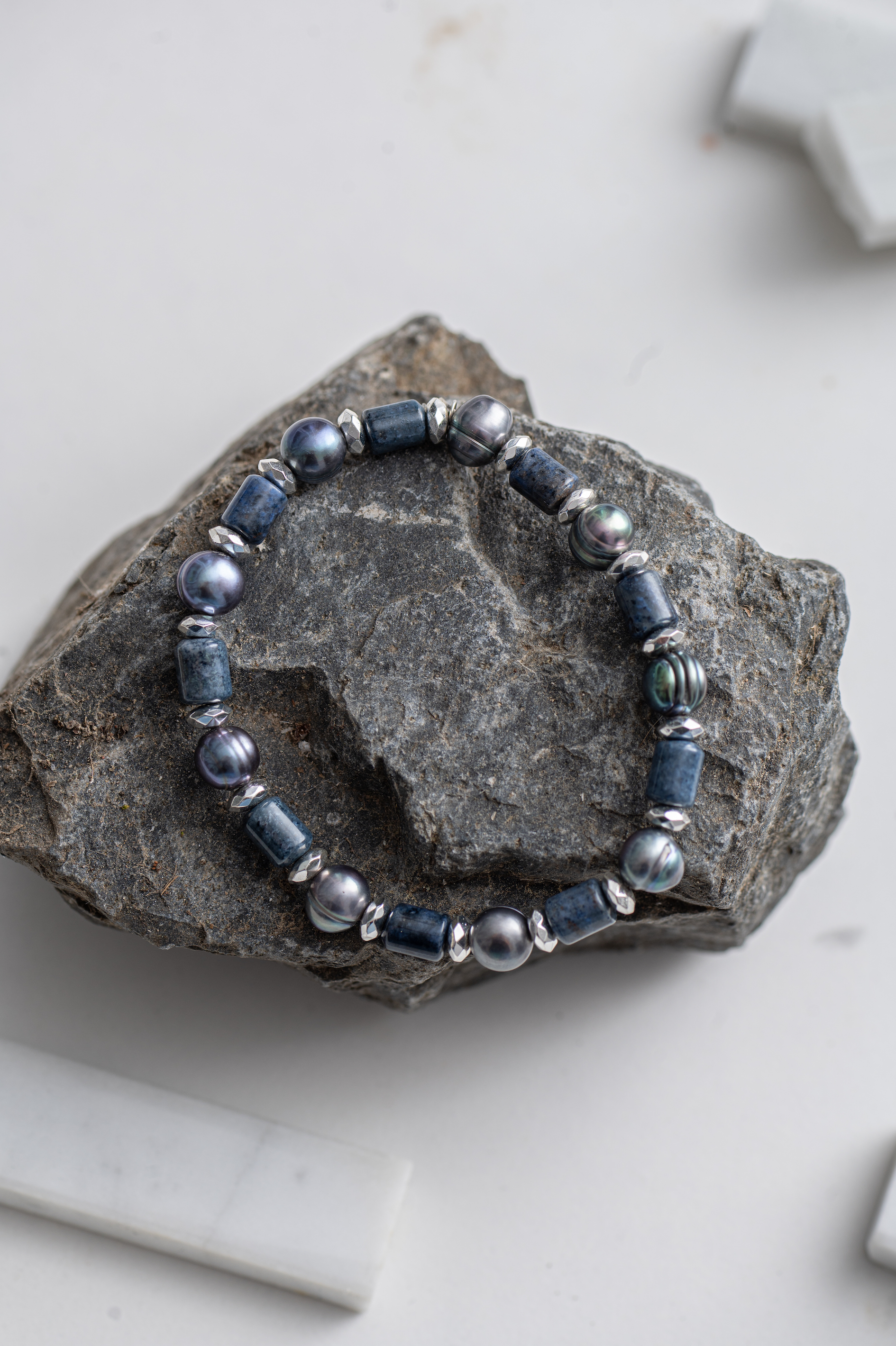 Fazon: Dumortierit Hematit Ásvány Tahiti Gyöngy Ezüst 925 Karkötő