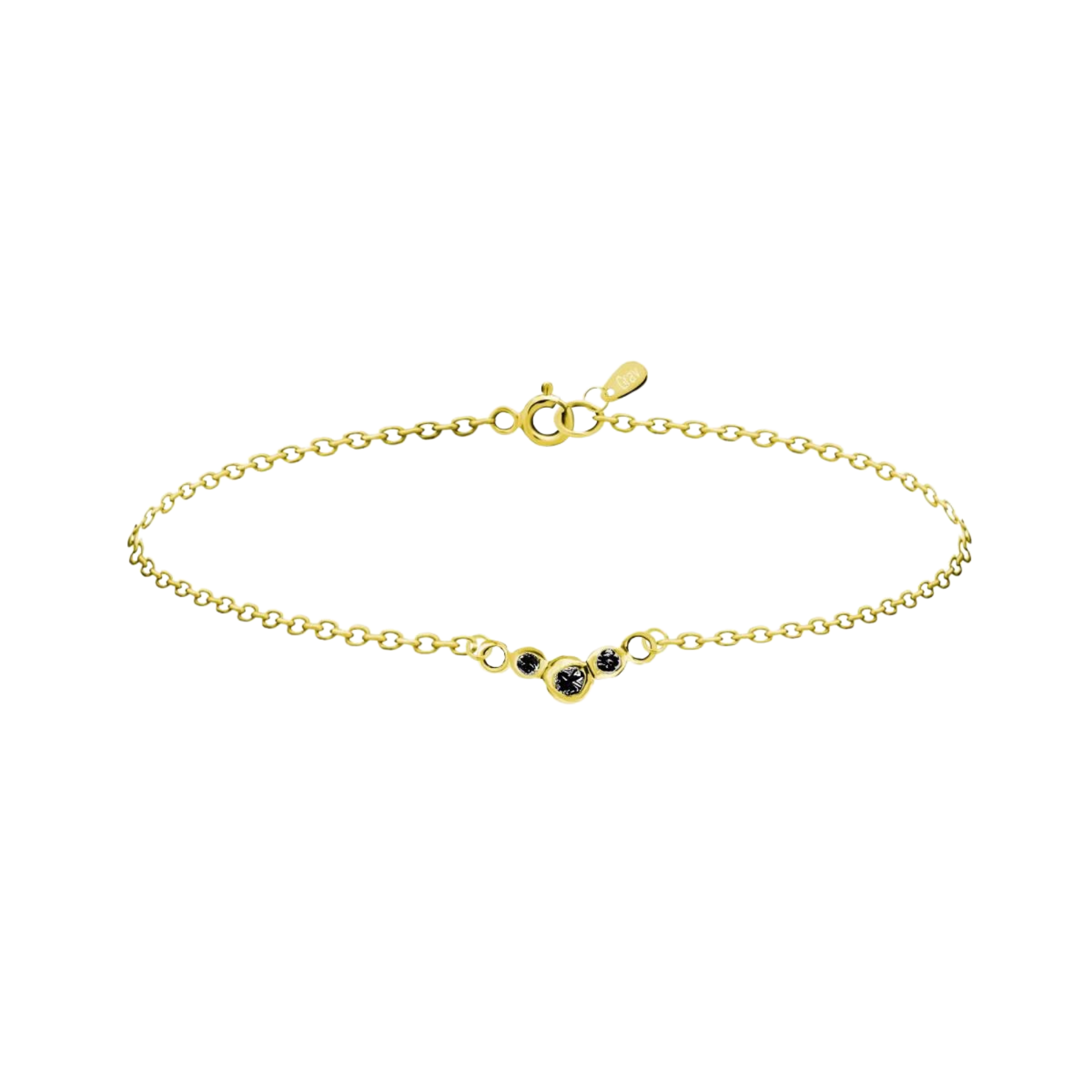 Fazon: 3 Fekete Cirkónia Féldrágakő Ív Sárga Arany 14K Karkötő