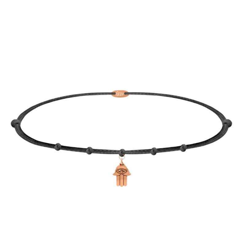 Fazon: 7 Csomós Fekete Fonalas Karkötő Vörös Arany 14K Medállal