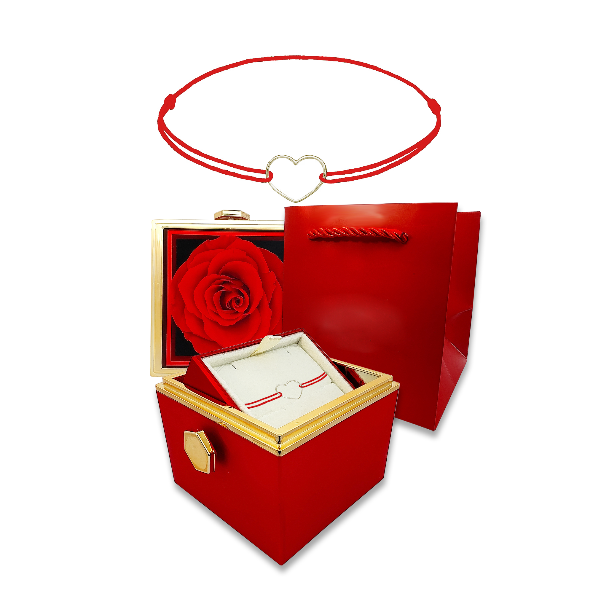 Fazon: Kontúr Szív Medál Örök Rózsával Fehér Arany 14K Fonalas Karkötő