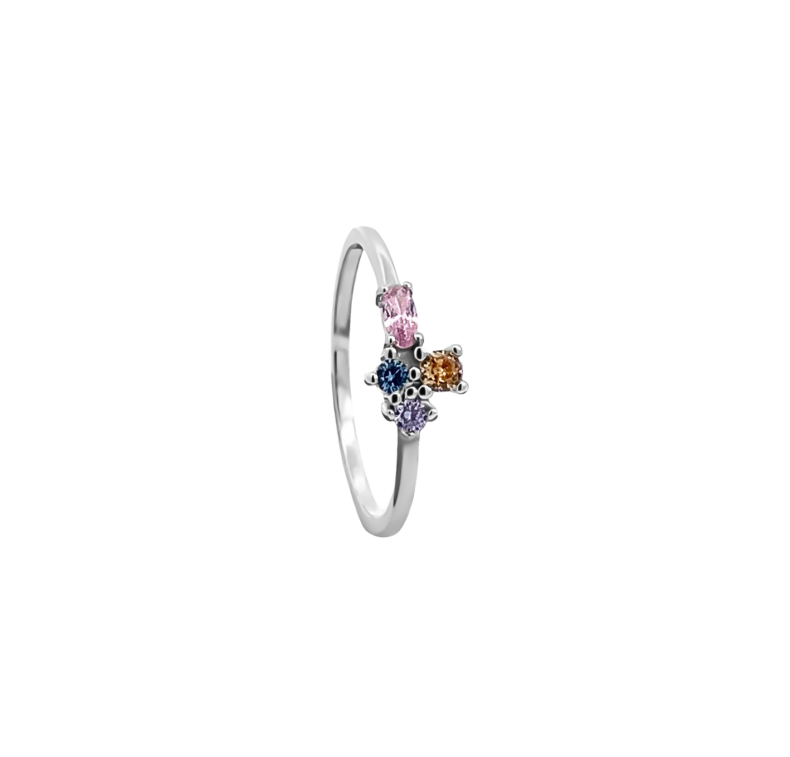 Fazon: Színes Cirkónia Köves Fehér Aranyozott Ezüst 925 Gyűrű