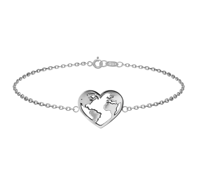 Fazon: Szívben Földgömb Ezüst 925 Karkötő